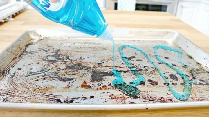 Whatever it was, how do you tackle cleaning them? Do you grab a dry rag,and just try to wipe out the grime? Or worse yet, use your hands to get the stuff off of it, chipping away little by little? You could do either of those, but you might ruin your rag. (Like rip an actual hole in it if the stuff is hard enough!) You will certainly gag if you just use your hands to clear out congealed fat from meat. And you’re almost guaranteed to get stuff under your fingernails that way, which you will regret later. Trust me.