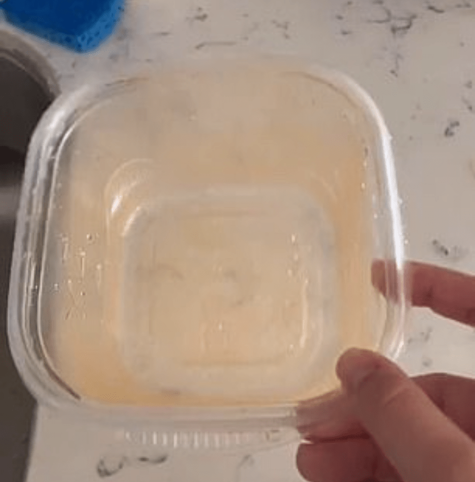 Not so with plastic. Oil or grease, especially from meat, seems to leave a film that just doesn’t want to let go. Sometimes even after you wash it with hot water and soap, a little of it remains. You can feel it with your fingers when you go to put it away.